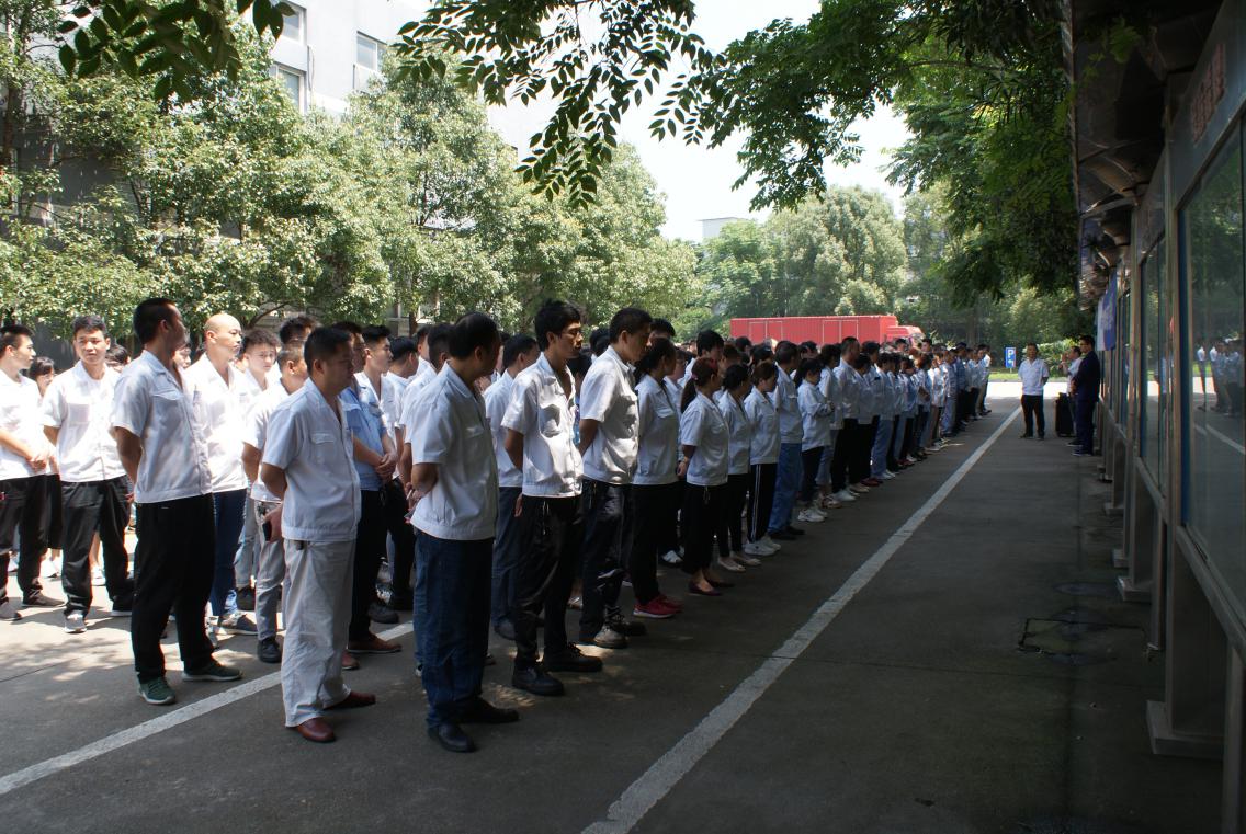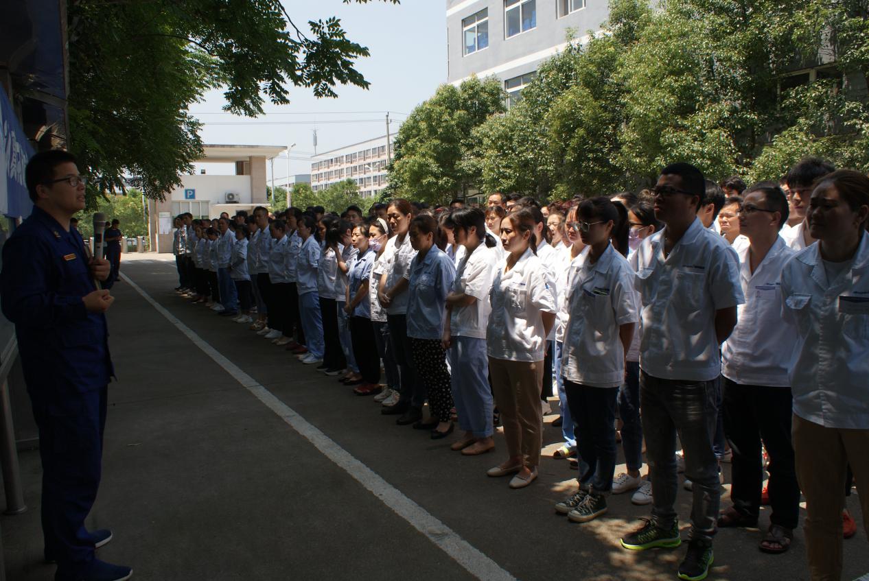 原來(lái),公司正在進(jìn)行消防緊急疏散演習(xí),演習(xí)過(guò)程僅五分鐘,五分鐘后,公司全體員工安全撤離到公司廣場(chǎng),